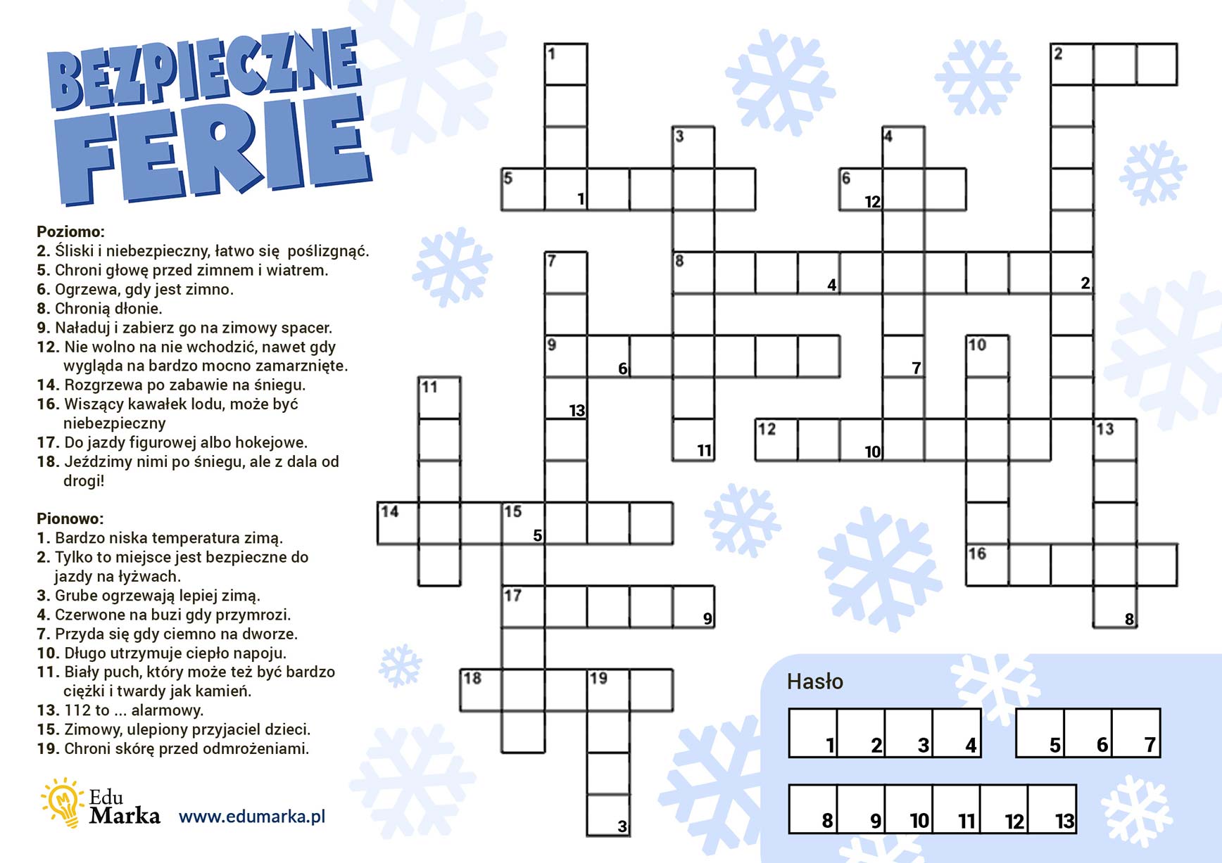 Na tej stronie możesz pobrać darmowy plakat z zasadami bezpiecznych ferii zimowych, który sprawdzi się w klasie, na świetlicy a nawet w domu. Do pobrania jest również prosta krzyżówka związana z bezpieczną zimą. To lekka forma utrwalenia zasad, dobra zarówno dla młodszych, jak i starszych uczniów. Bezpieczna zima nie oznacza nudnej zimy. Oznacza taką, po której zostają dobre wspomnienia, a nie niepotrzebne urazy. Warto o to zadbać wcześniej, zanim dzieci wyjdą na śnieg.