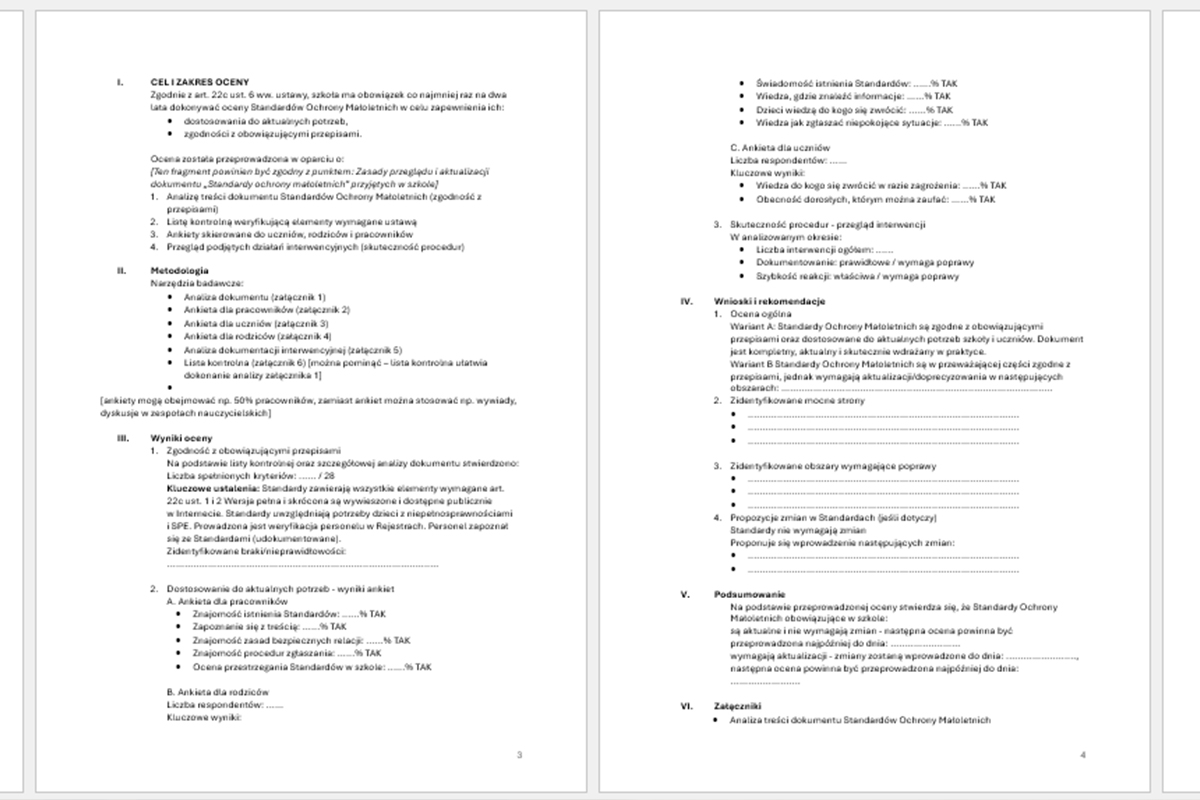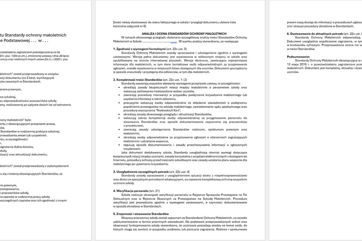 Ocena co dwa lata to obowiązkowy moment, żeby to sprawdzić. Nie chodzi o generowanie kolejnego dokumentu "pod kontrolę", tylko o realne spojrzenie na to, czy system ochrony dzieci w Twojej placówce działa.